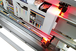 Off-the-shelf video cameras are used to monitor production progress utilizing a code printed alongside the sheets. Throughout the print run, the system registers the current position of the printed paper. This enables high-precision, front-to-back registration on the uncut roll paper. With the DJet, status messages regarding printer readiness, filling level of the ink cartridges, production progress, end of paper roll, etc. are reported in real-time.